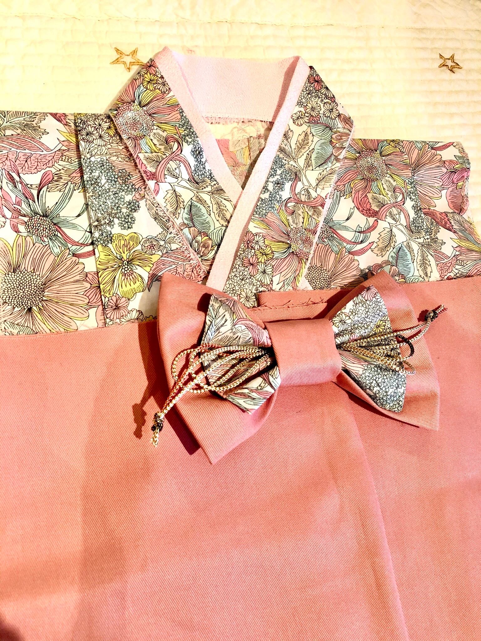リボン 袴生地+リバティ生地+金丸紐