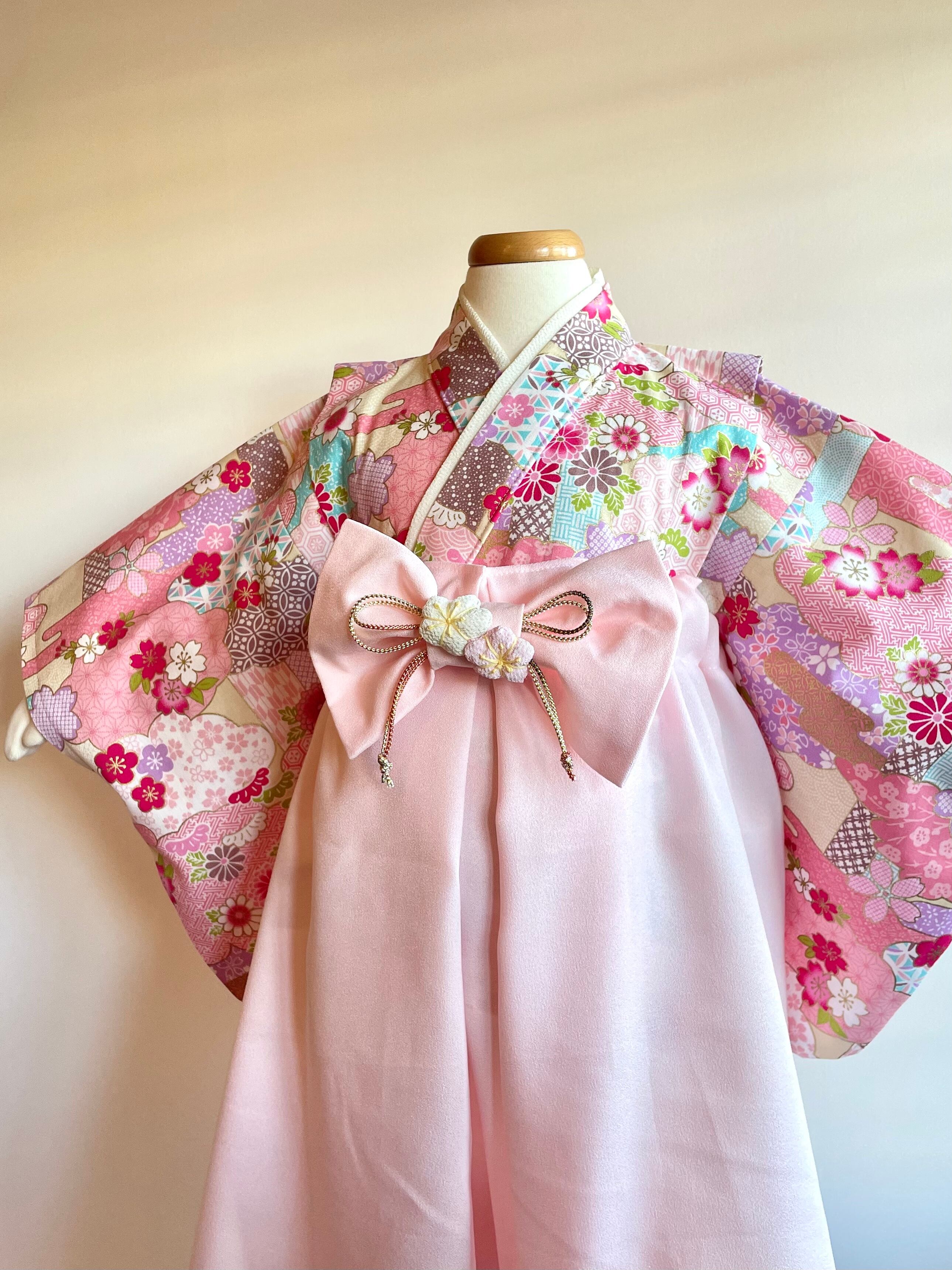 《現物即納》a.m.baby 和柄ベビー袴 お花リボン Sサイズ